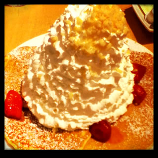 エッグスンシングスンのパンケーキ、ほんとシェアしないと食べれないくらいのボリュームでしたが、上に乗っけるホイップはダブルにしちゃいました。